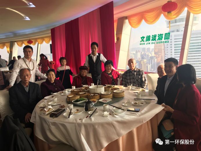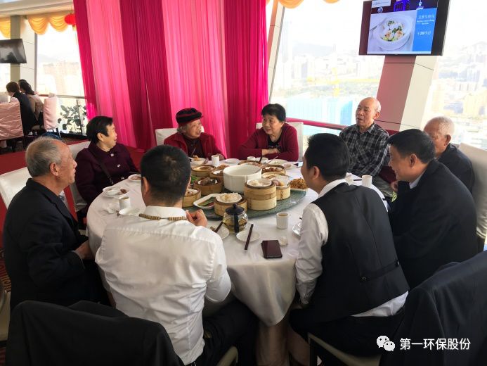 30日上午,第一环保家人们在国贸旋转餐厅喝早茶,坐在深圳第一高楼观看深圳风采,子女陪伴在父母的身边,给父母盛粥,夹菜,倒茶……一边喝茶,一边聊天,一边看风景,享受着亲人在身边的美好时光。